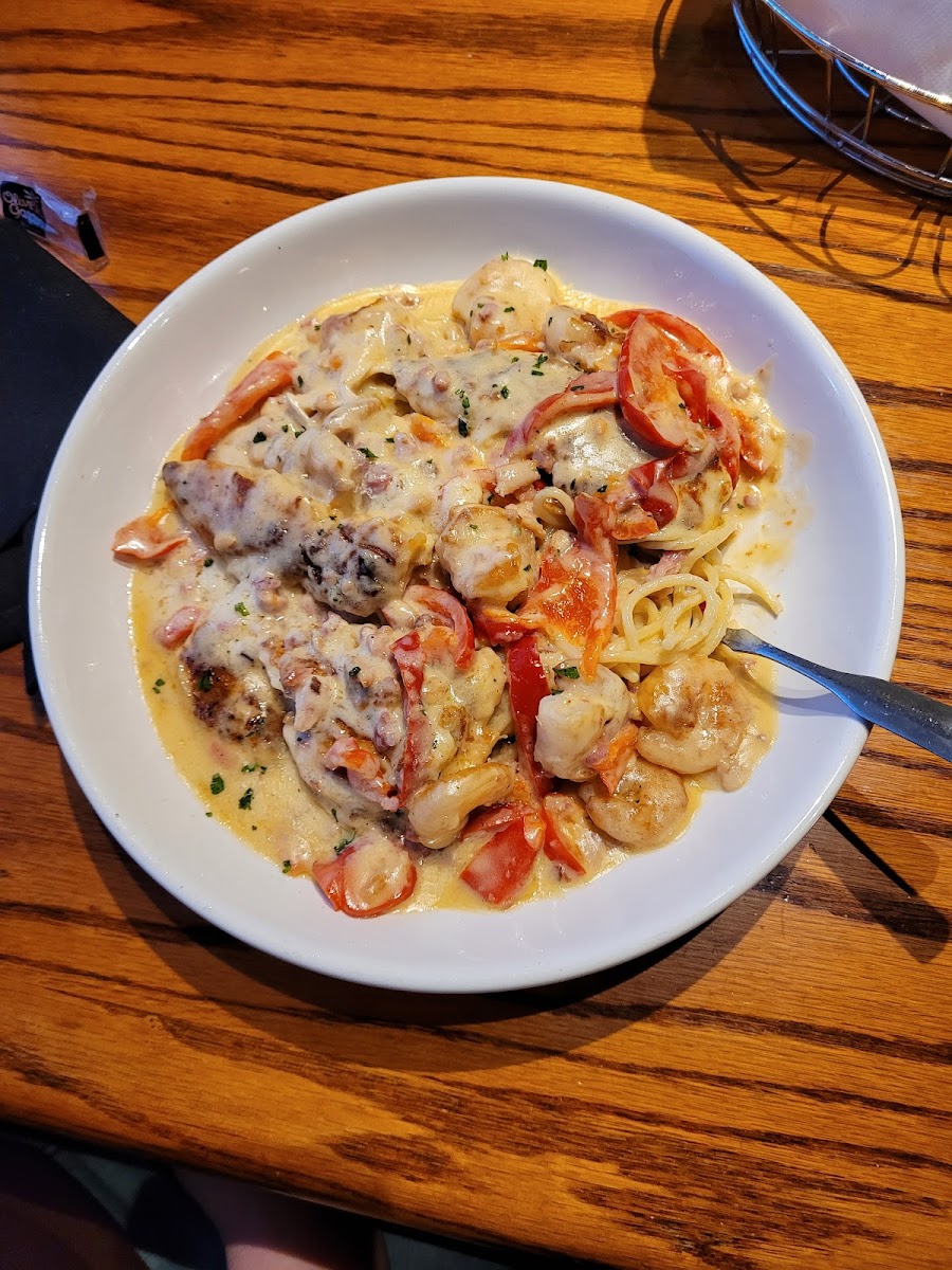 When it comes to food, Olive Garden Mays Landing truly shines. Their signature dishes such as Lasagna Classico, Chicken Parmesan, and Lobster Ravioli are crowd favorites, offering layers of flavor that capture the essence of Italian home cooking. The Tour of Italy, featuring a trio of best-loved entrées, is a must-try for anyone who can’t decide on just one. Vegetarians can indulge in the Eggplant Parmigiana or Minestrone Soup, while seafood lovers often go for the Clam Chowder or Chicken & Shrimp Carbonara. And of course, no visit is complete without a bite of Tiramisu or a rich Cheesecake with Strawberry Sauce for dessert.